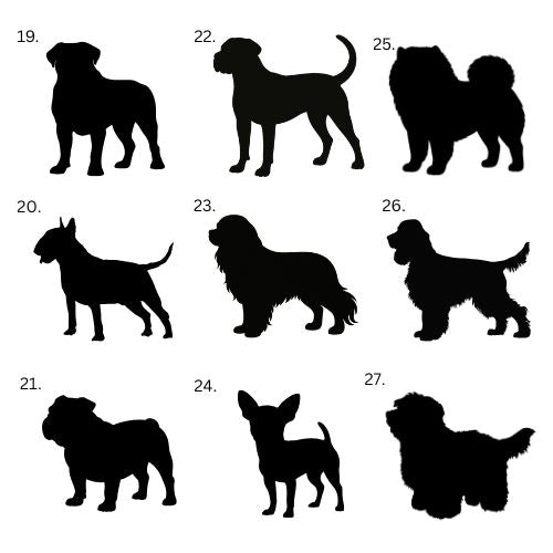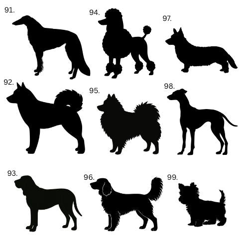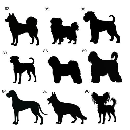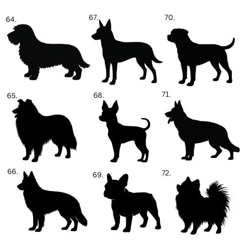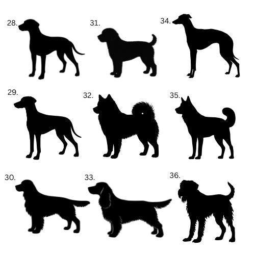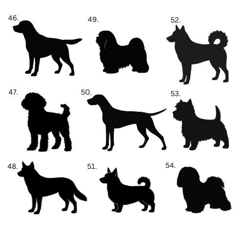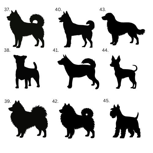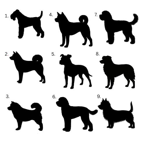 If your dog's breed is not on the list or your dog is mixed breed, we make the silhouette directly from your dog's photo. Choose "Other" from the list and send us a picture by email.