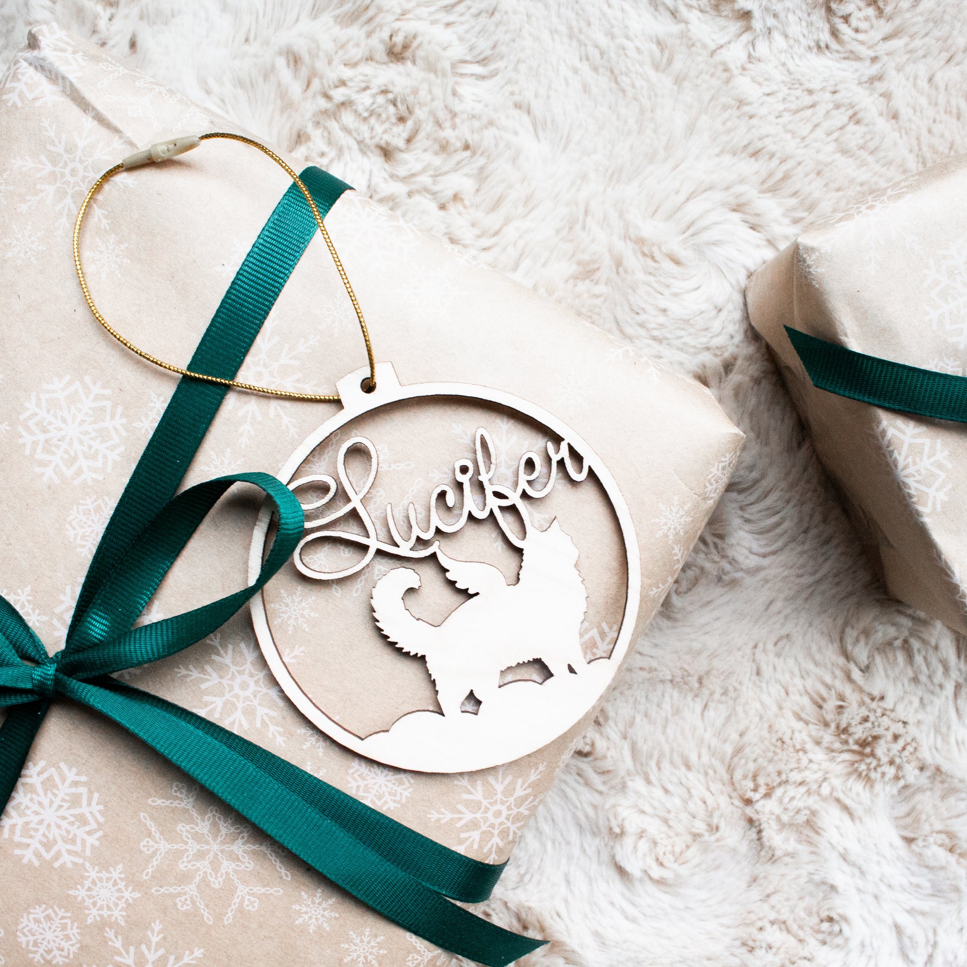 Nämä kissajoulukoristeet saat haluamallasi nimellä/sanalla. Tämä joulupallo on täydellinen tapa muistaa edesmennyttä kissaa, jossa kissan siluettiin lisätään siivet. Nimikoidut kissajoulupallot tulevat säilymään sinulla ikuisesti eivätkä rikkoudu helposti, toisin kuin lasiset koristeet. Nämä sopivat erinomaisesti joululahjaksi, koska jokainen koriste on ainutlaatuinen.