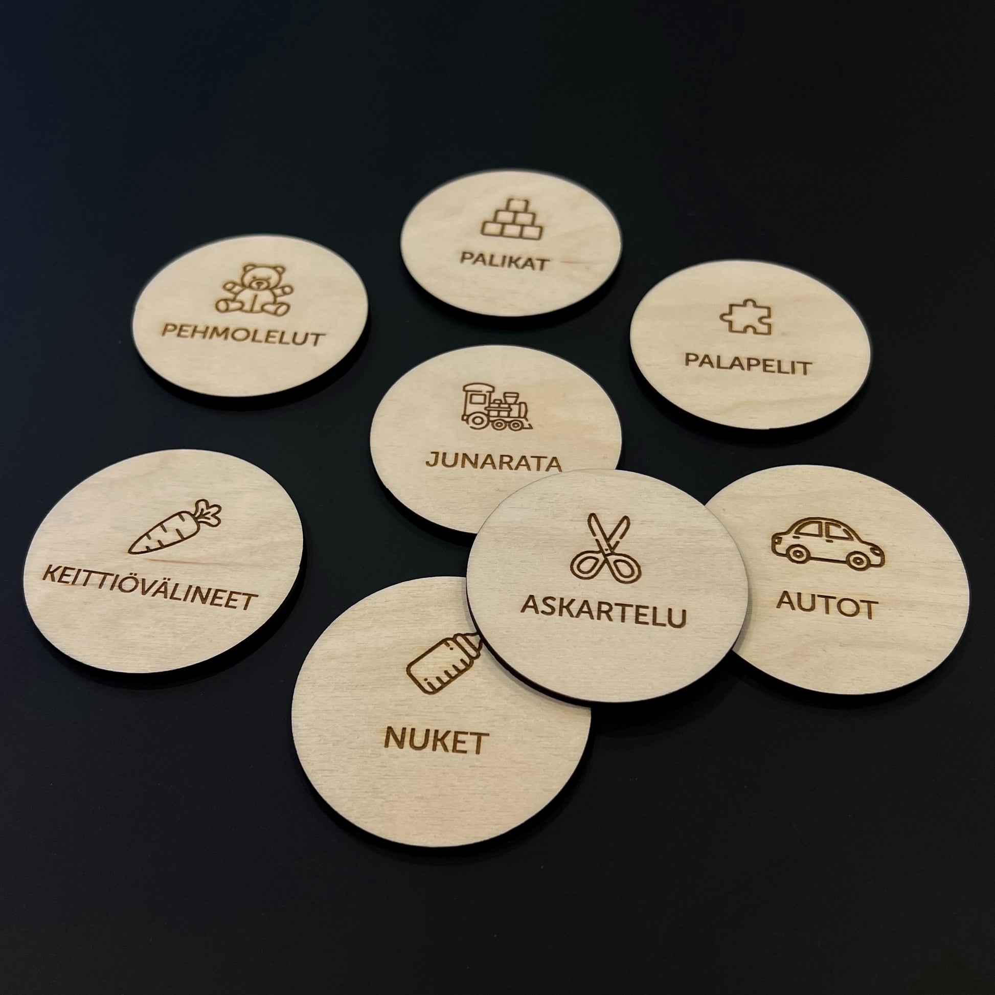 With these beautiful wooden name tags, you bring a touch of nature and order to the children's room. The tags also help the child organize the toys into their own boxes. Whether the purpose of the name tags is educational or just a fun addition to the room's decor, these tags bring smiles and order to everyday life.