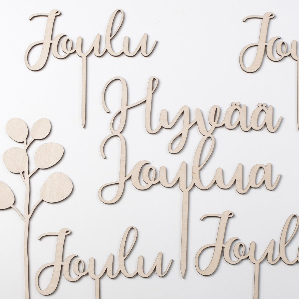 Lisää pöytään joulun tunnelmaa sesonkiin sopivalla kakkukoristeella. Puinen kakkukoriste on myös ekologisempi vaihtoehto muovikoristeelle.